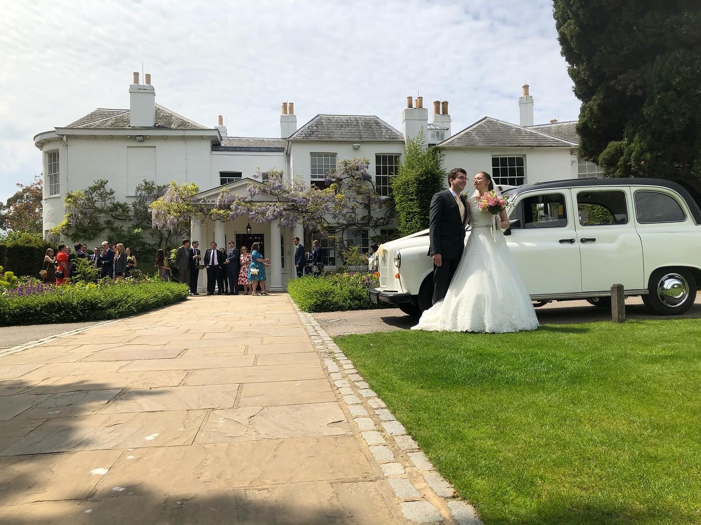 The beautiful wedding of Thomas and Candy, we collected groom Thomas from Kingston-upon-Thames in our Vintage Ivory Wedding Taxi dressed in Ivory ribbon and bow, we then collected the lovely Candy from Richmond-upon-Thames and delivered her to Pembroke Lodge for their wedding ceremony and reception.